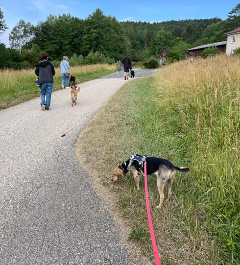 In den 2-5 Dogs Begegnungscoachings kann das Erlernte mit gezielt ausgesuchten Hund-Mensch Teams vertieft werden. Hier greife ich auf Klienten und deren Hunde zurück. Von Leinenrambo bis super