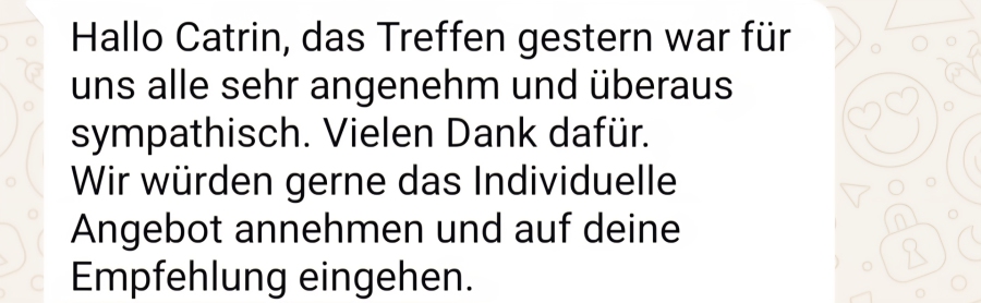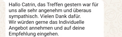 Catrin hat damals super schnell auf meine Anfrage geantwortet und wir konnten uns zeitnah zum